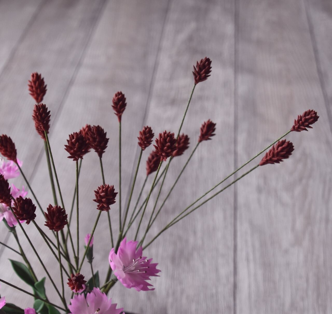 粘土で秋の花、ナデシコ・吾亦紅(われもこう)を作りました。