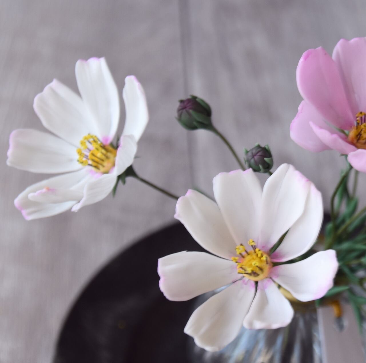 ◆粘土のお花◆ コスモス ライトピンク&ホワイト K1069