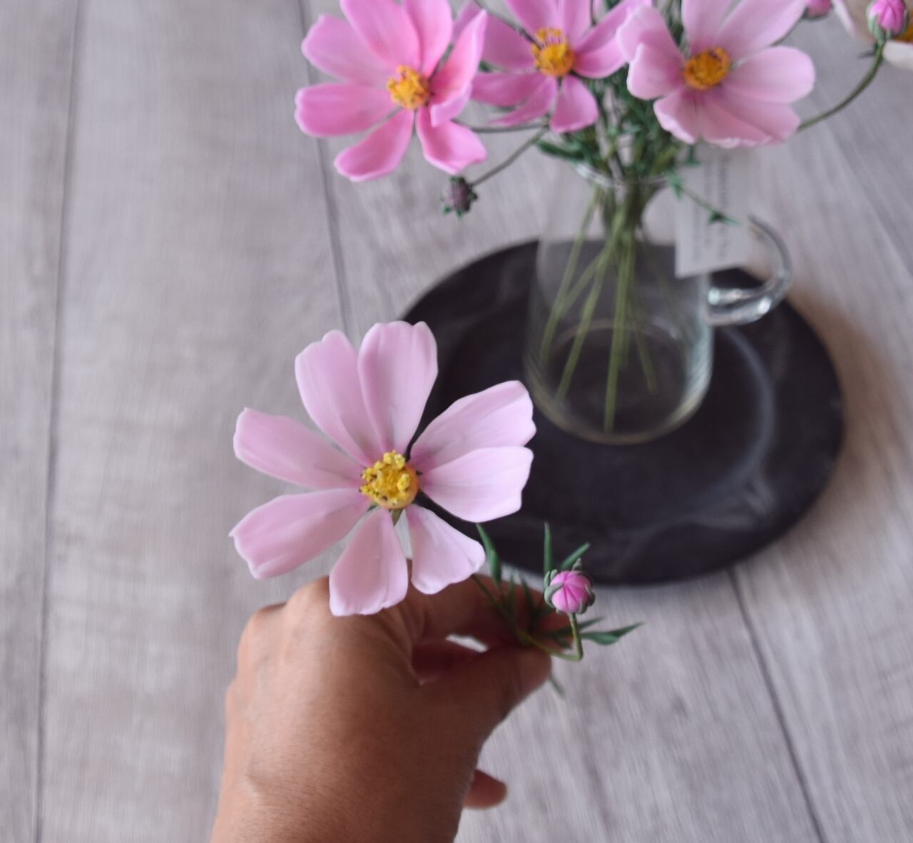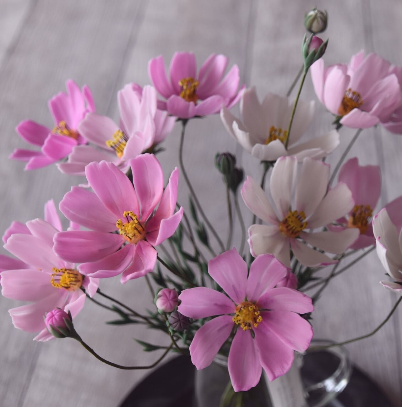 ◆粘土のお花◆ コスモス ピンク&ライトピンク&ホワイト K1071
