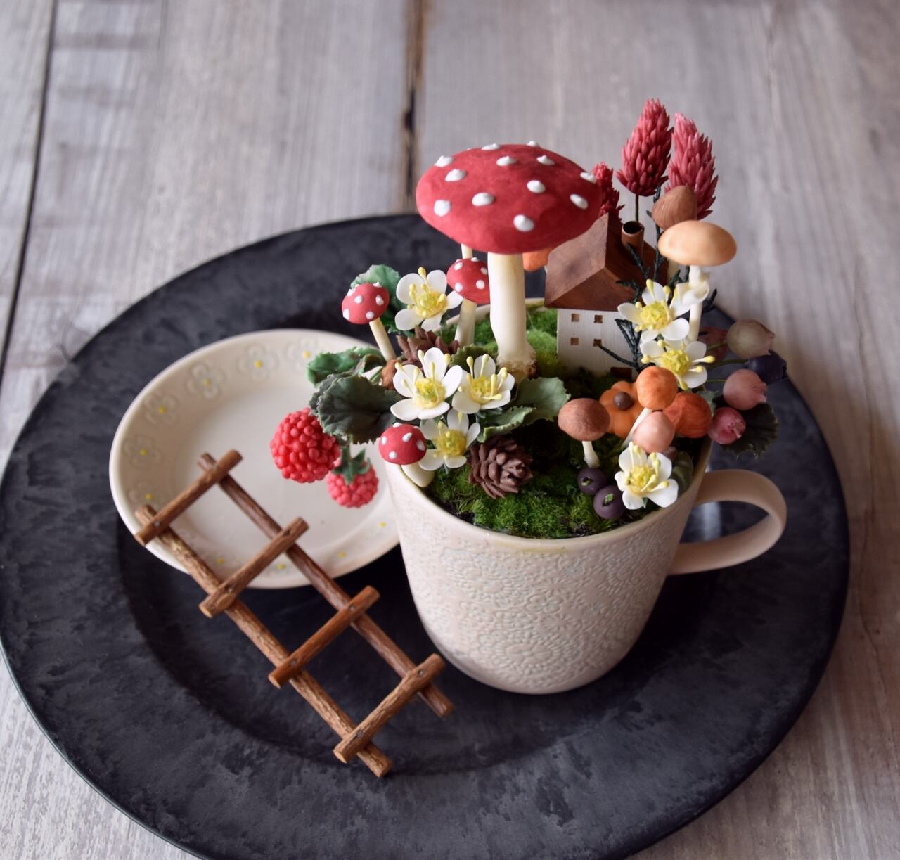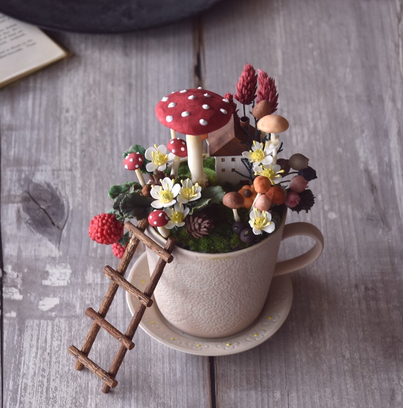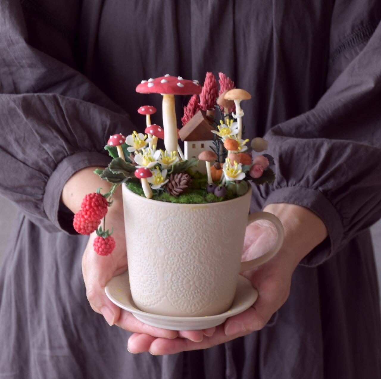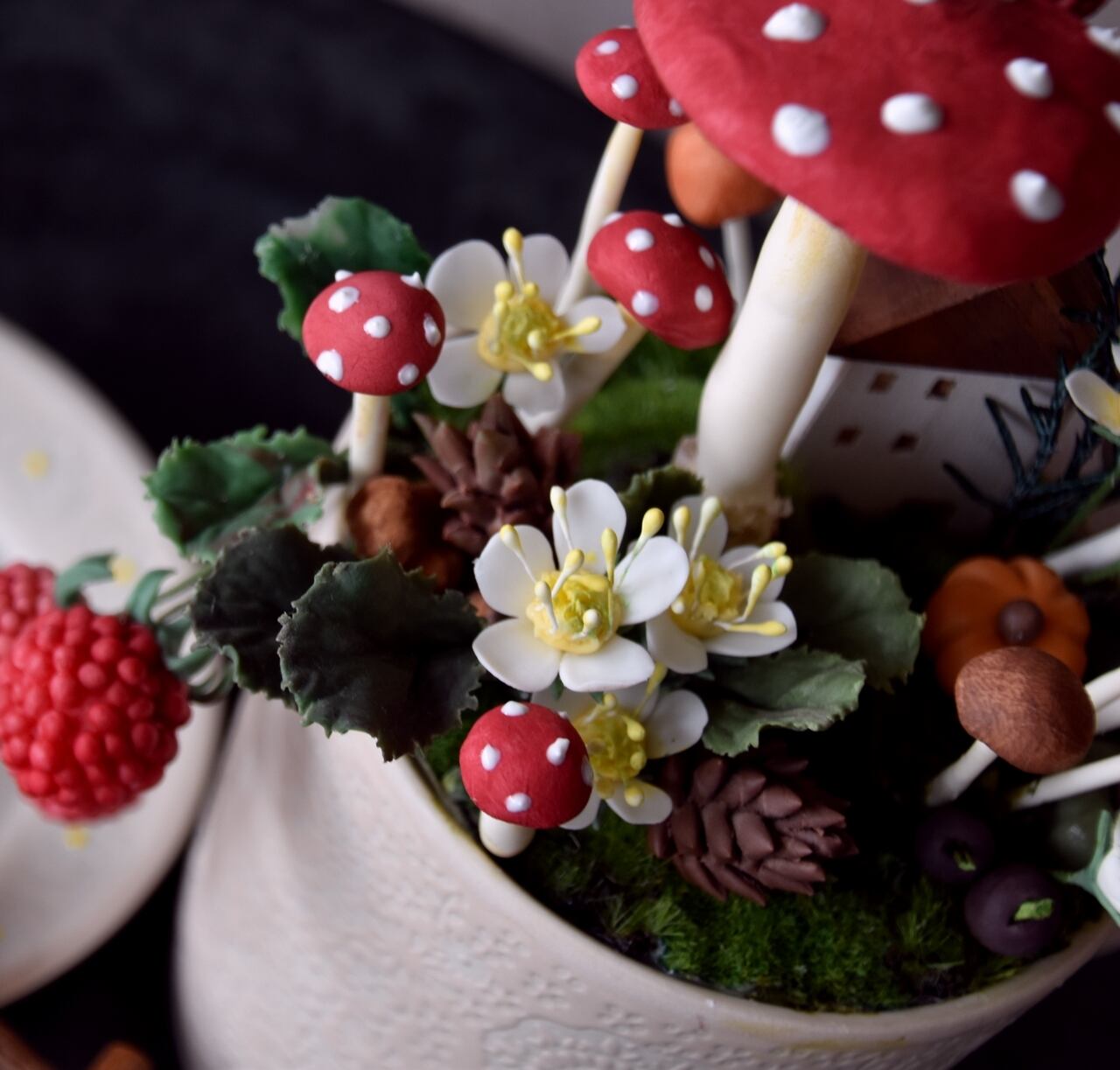 ●キノコや小花、ベリー等の実物植物は粘土で出来ています。