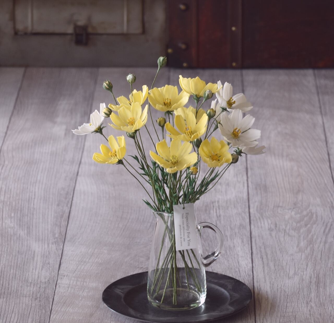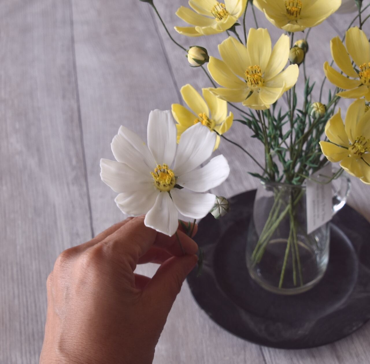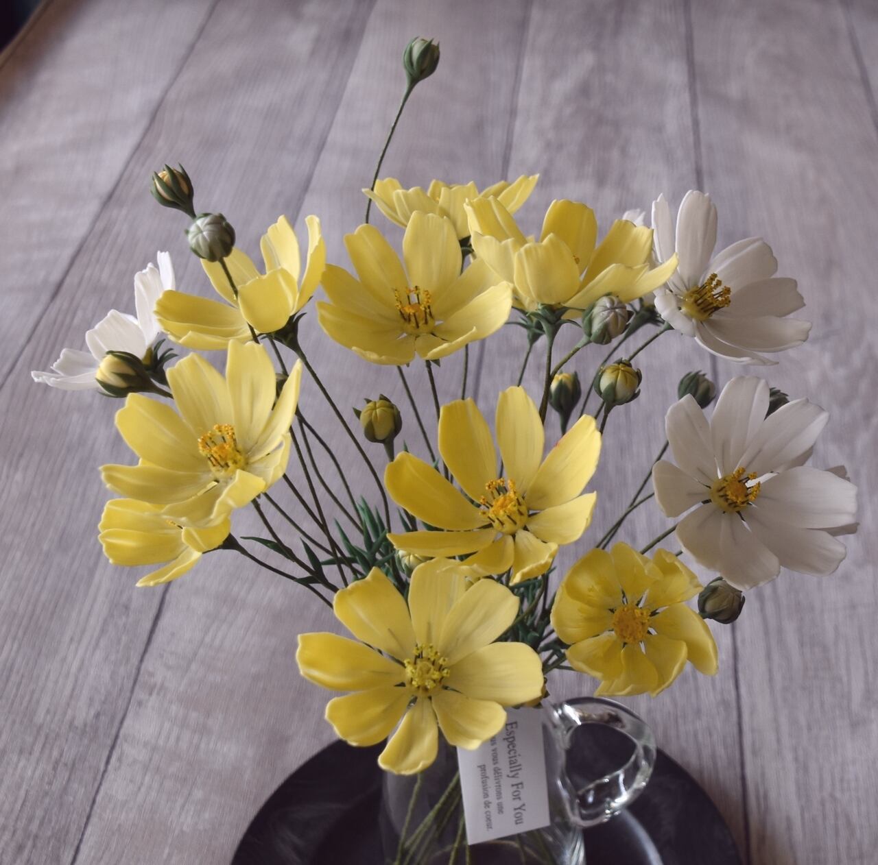 ◆粘土のお花◆ コスモス ホワイト&イエロー K1073