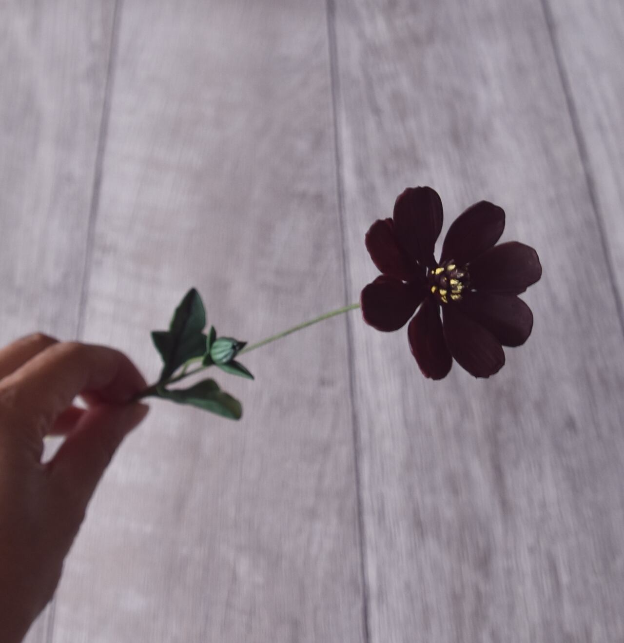 粘土で制作したチョコレートコスモスです。