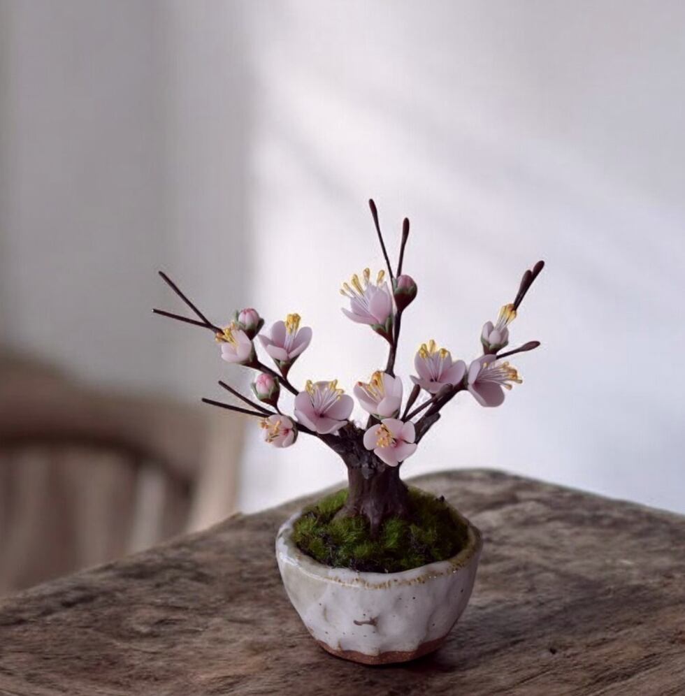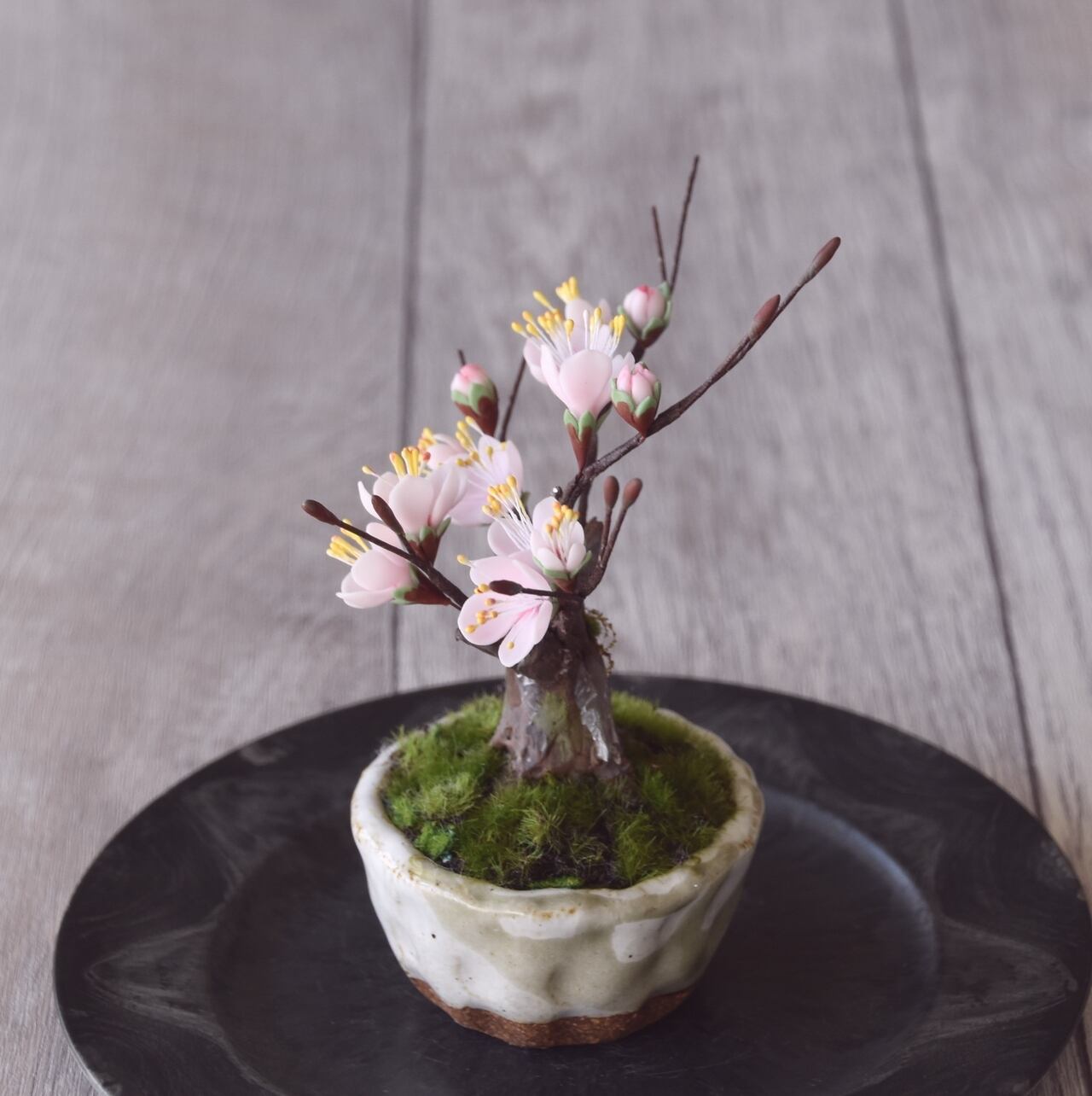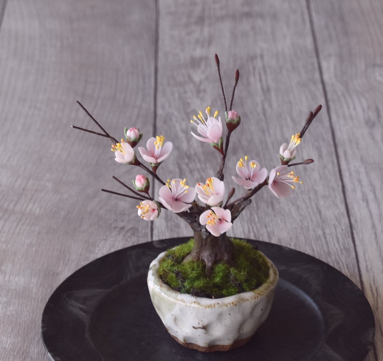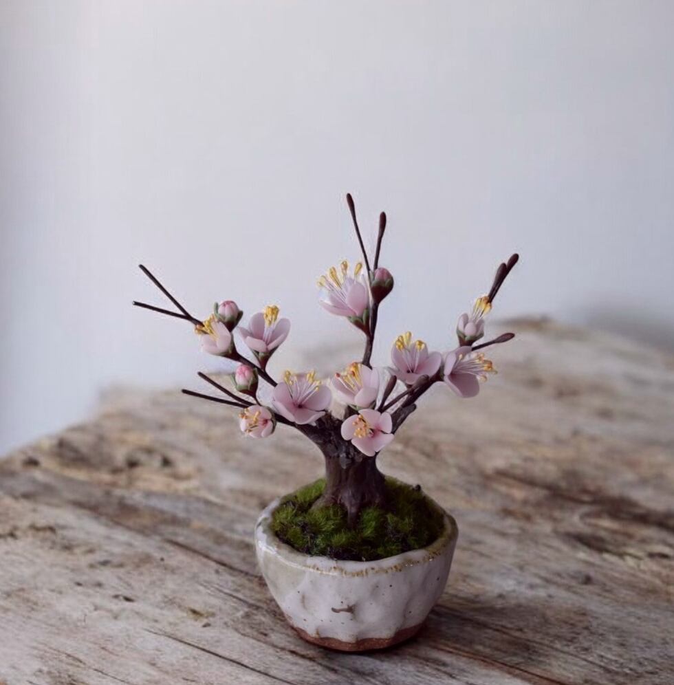 ◆粘土のお花◆ 枯れない梅の木♪ 梅盆栽 白 U1112
