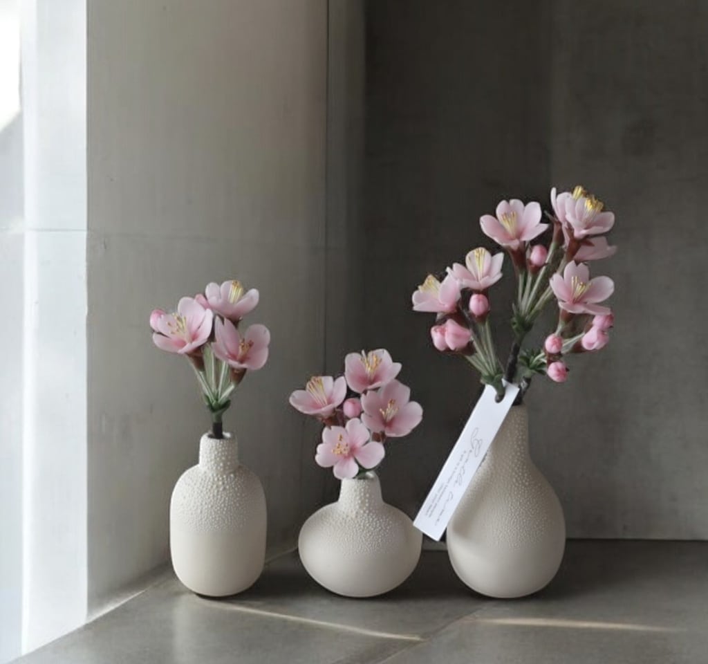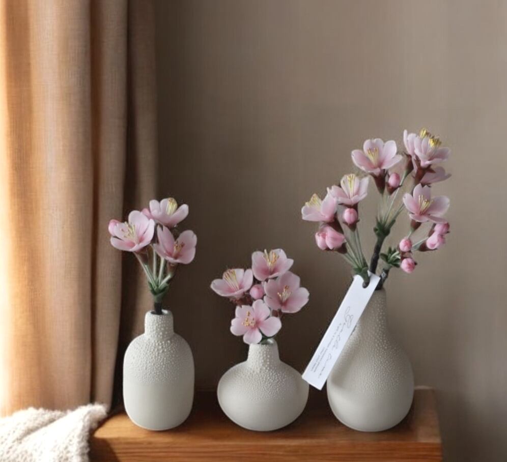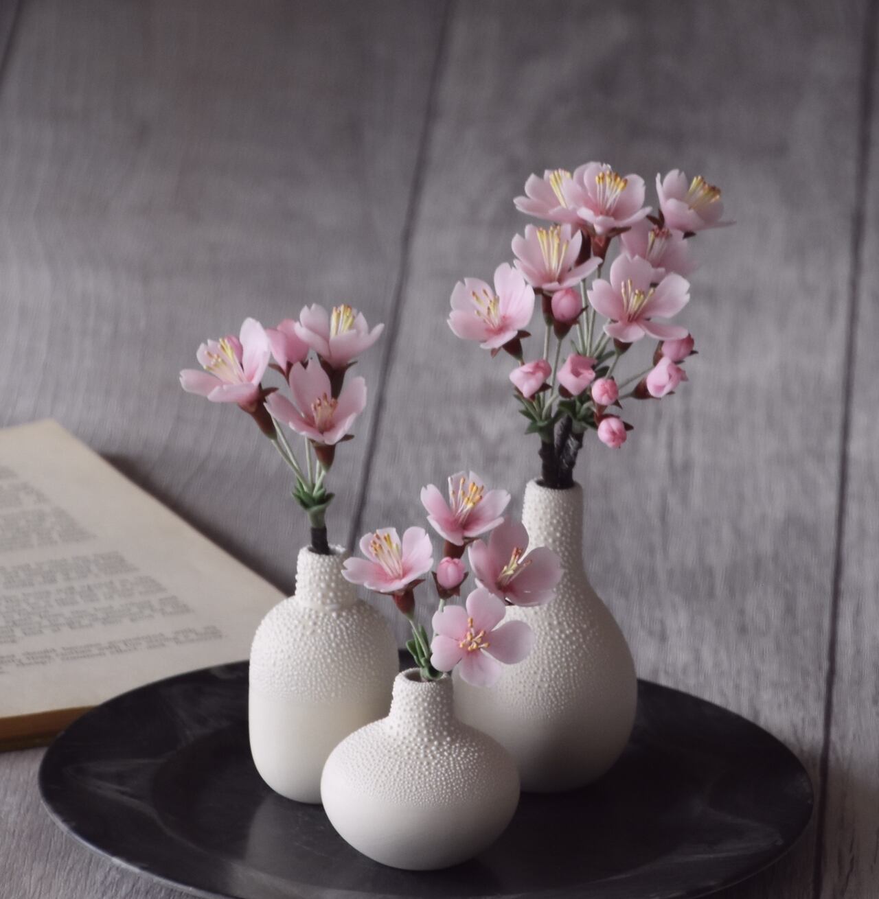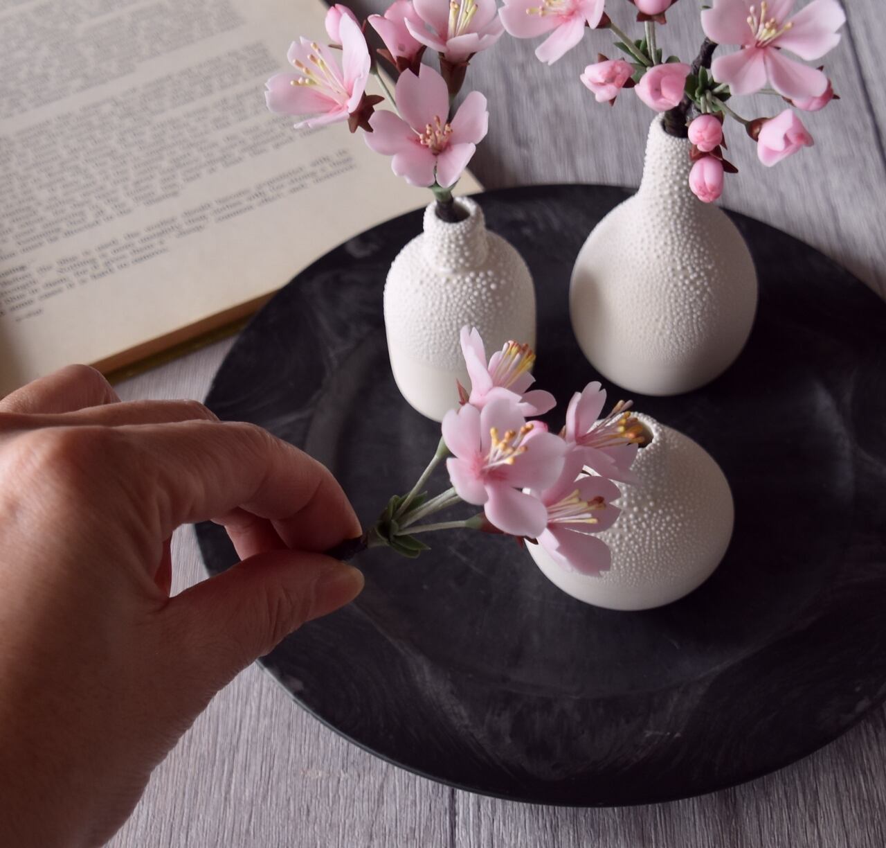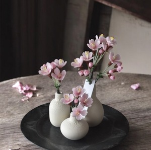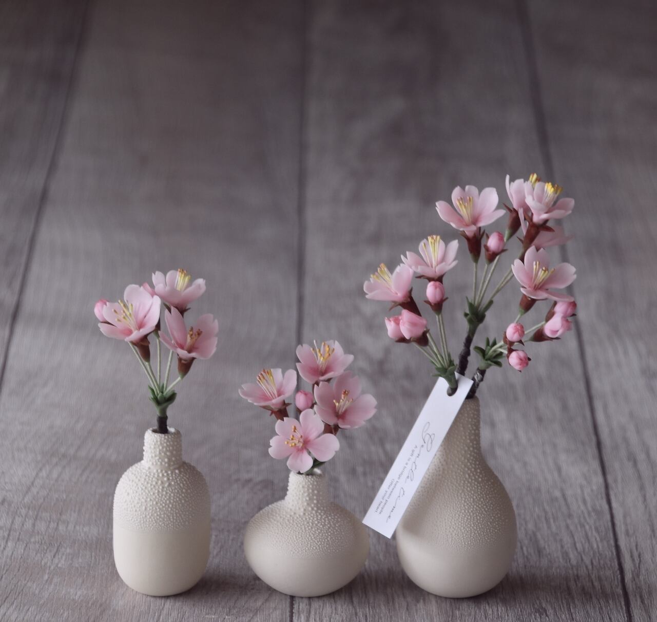 粘土で桜をつくり、小さなフラワーベースに活けました。