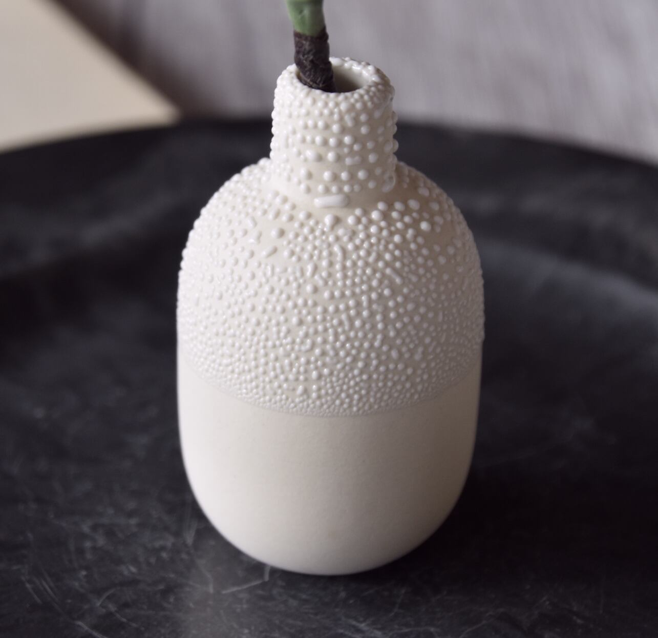 真っ白なフラワーベースとマッチして、本当にかわいいです。