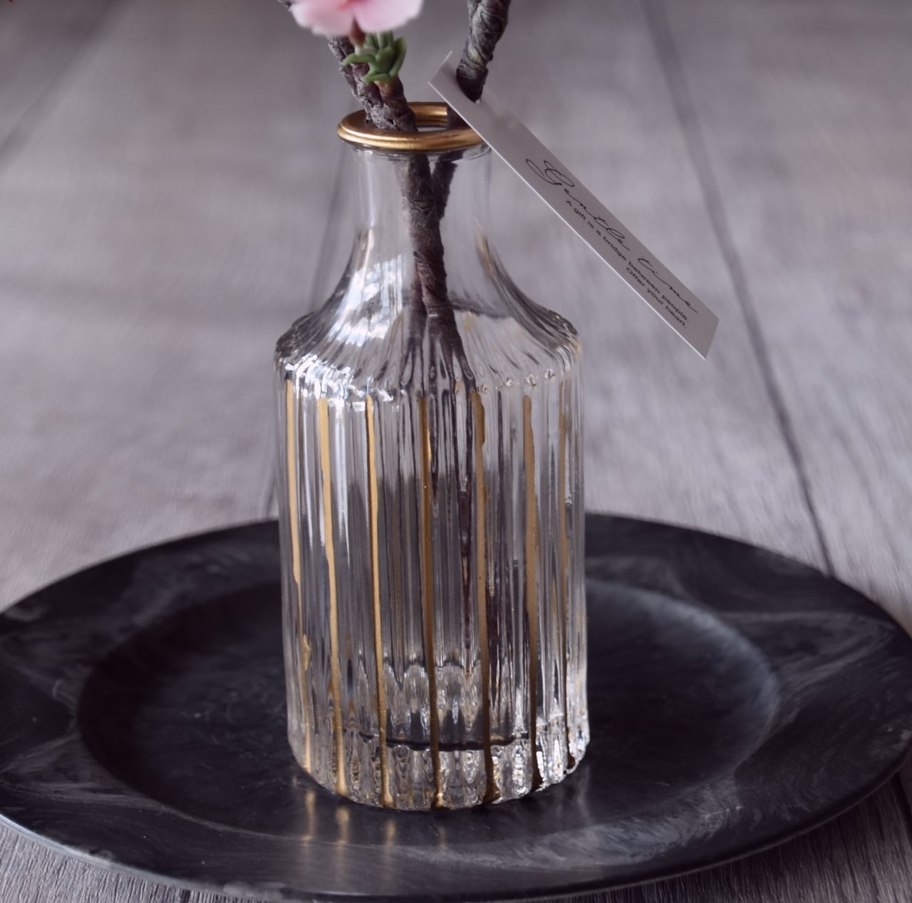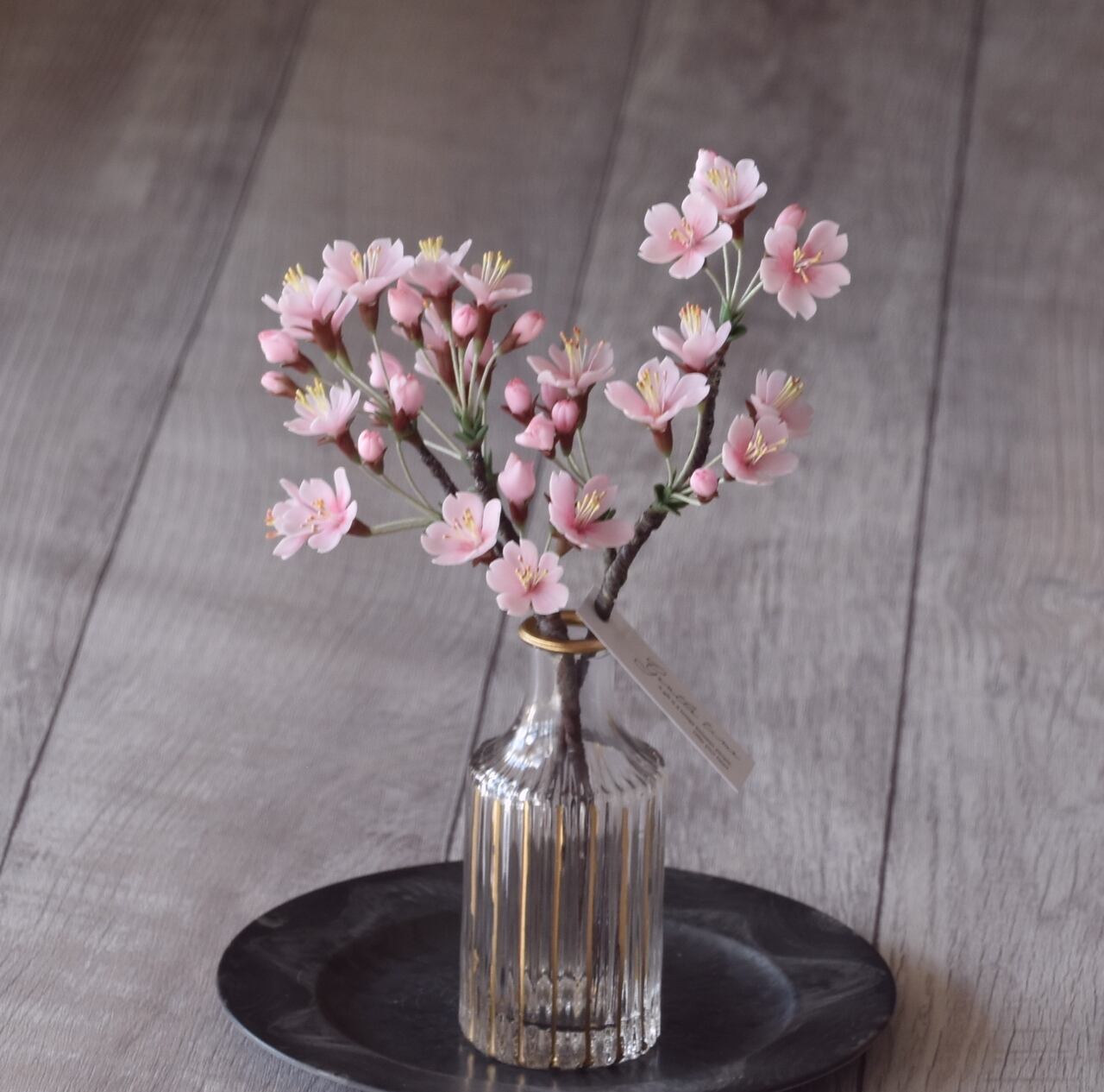 フラワーベースのエレガントさが桜の花の鮮やかな美しさを引き立ててくれます。